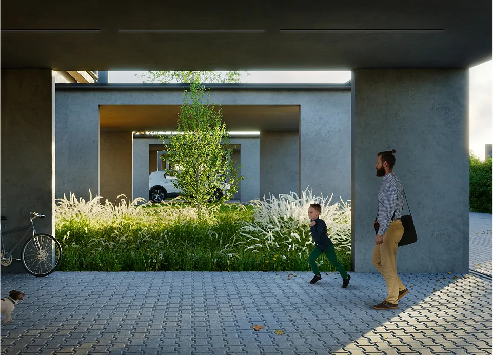 Osiedle zostało zaprojektowane z myślą o ekologii i wygodzie przyszłych mieszkańców. W każdym domu przewidziano rekuperację, możliwość montażu paneli fotowoltaicznych oraz ładowarkę do samochodów elektrycznych, dzięki czemu domy są energooszczędne i ekonomiczne w utrzymaniu.