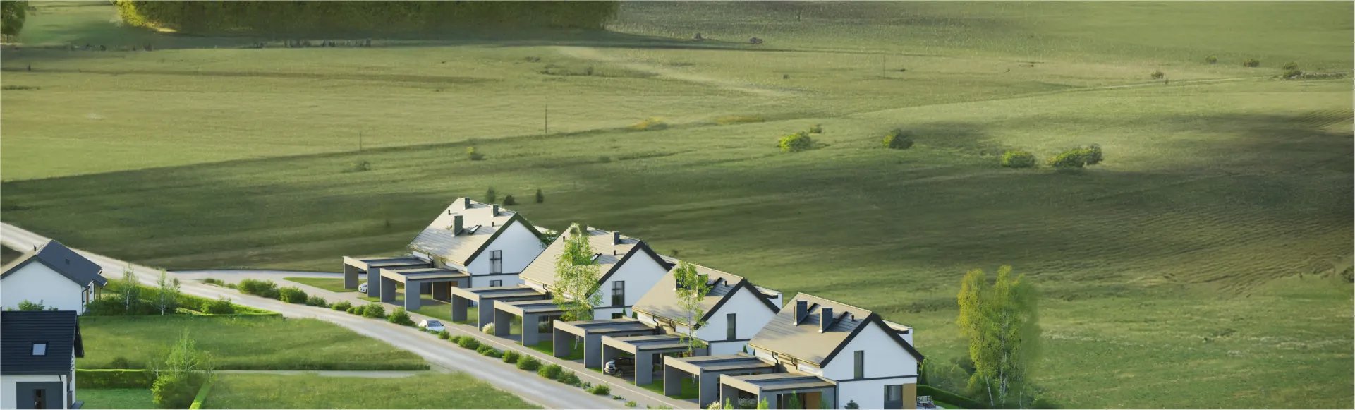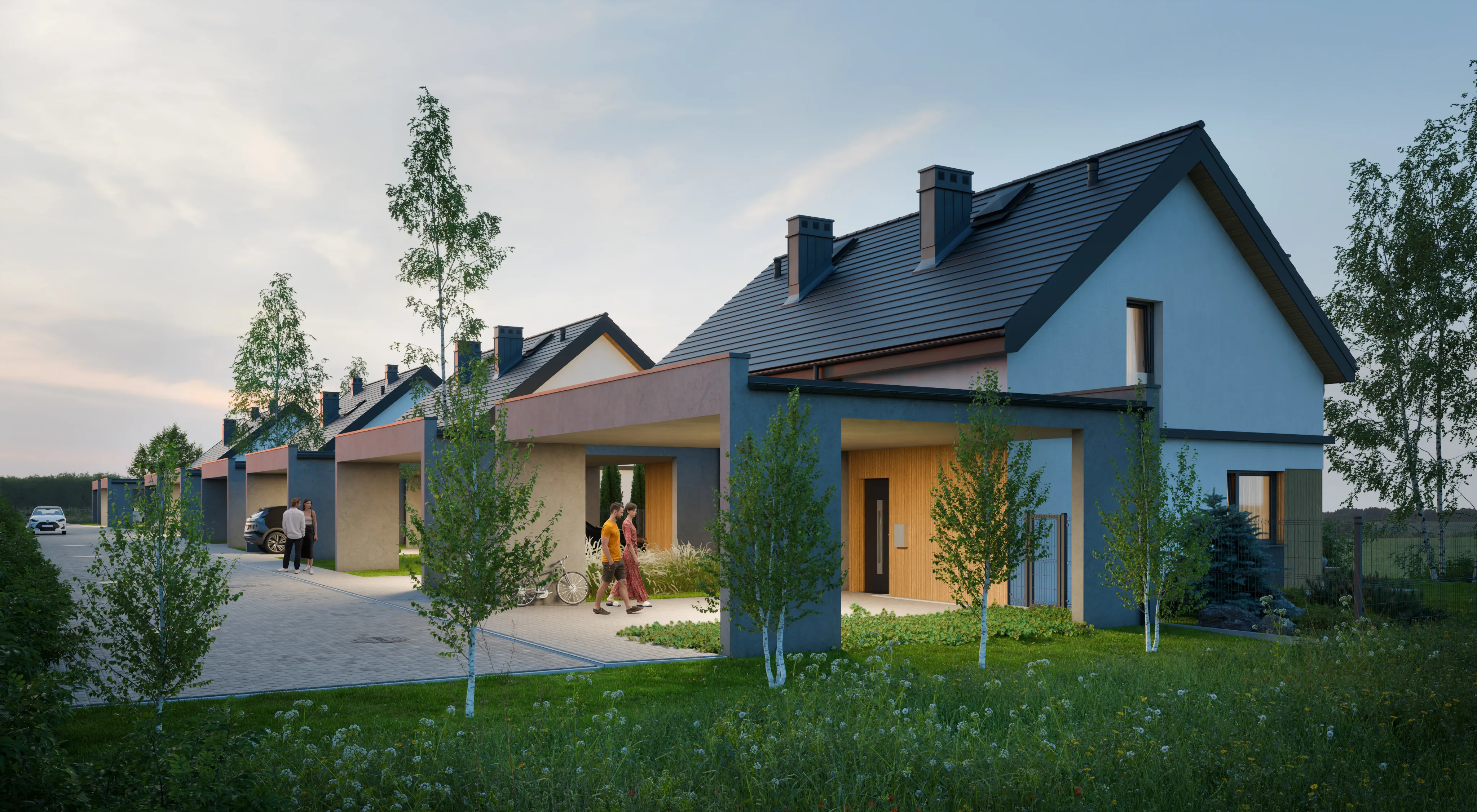 Każdy dom oferuje wysoki standard wykończenia oraz przestronny salon i trzy sypialnie, ogrzewanie podłogowe, taras od strony południowej, wiatę na dwa auta.