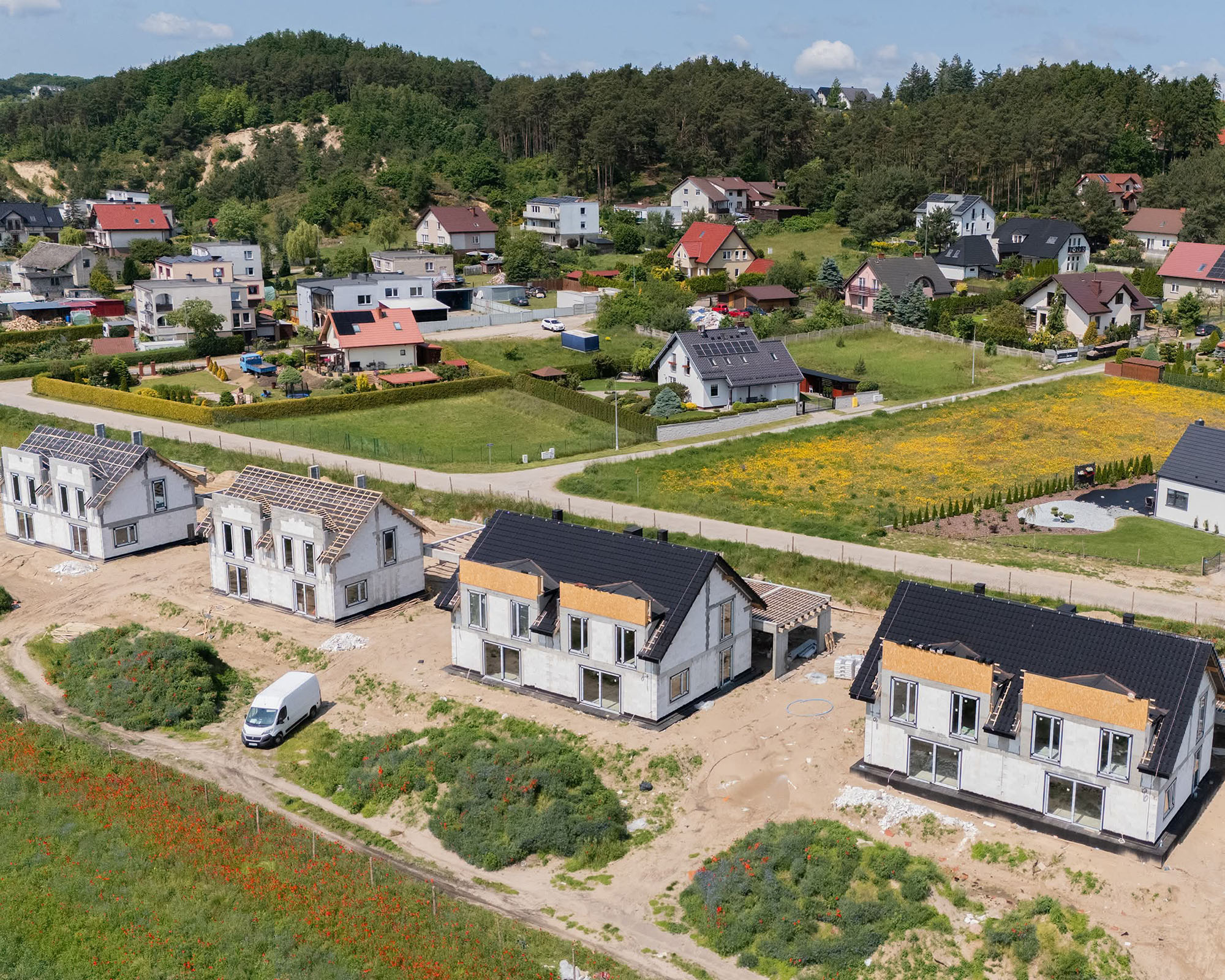 Domy w Mrzezinie to idealne miejsce dla osób ceniących bliskość natury. W pobliżu znajdują się tereny zielone, Rezerwat Beka i liczne trasy rowerowe. Jednocześnie dojazd do centrum Gdyni zajmuje około 30 minut.